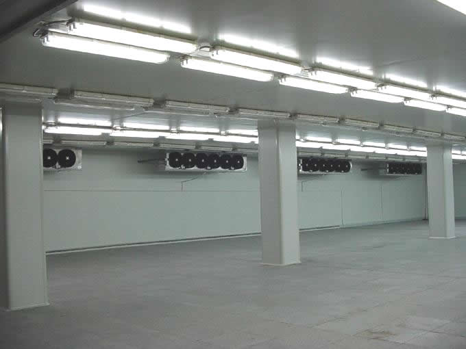 根據(jù)當(dāng)?shù)貧夂颦h(huán)境的特點(diǎn),確定庫(kù)體結(jié)構(gòu)采用鋼結(jié)構(gòu)還是磚混結(jié)構(gòu)。一般情況下,冷藏溫度與環(huán)境溫度相差在±;10℃時(shí),可以采用鋼結(jié)構(gòu)加聚氨酯保溫板;溫差更大時(shí),建議采用磚混結(jié)構(gòu)加聚氨酯保溫板。
